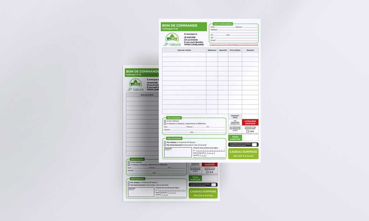 JP Nature a fait appel à la Boîte à Bidules pour la création d’un bon de commande pour accompagner son catalogue de vente par correspondance 2022-2023.