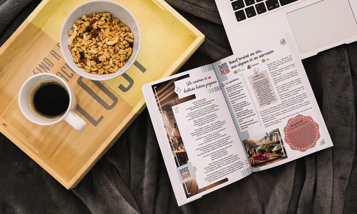 - Concevoir une mise en page claire et ludique, permettant de faire cohabiter harmonieusement texte, recette, QR code, et illustrations, tout en facilitant la lecture.