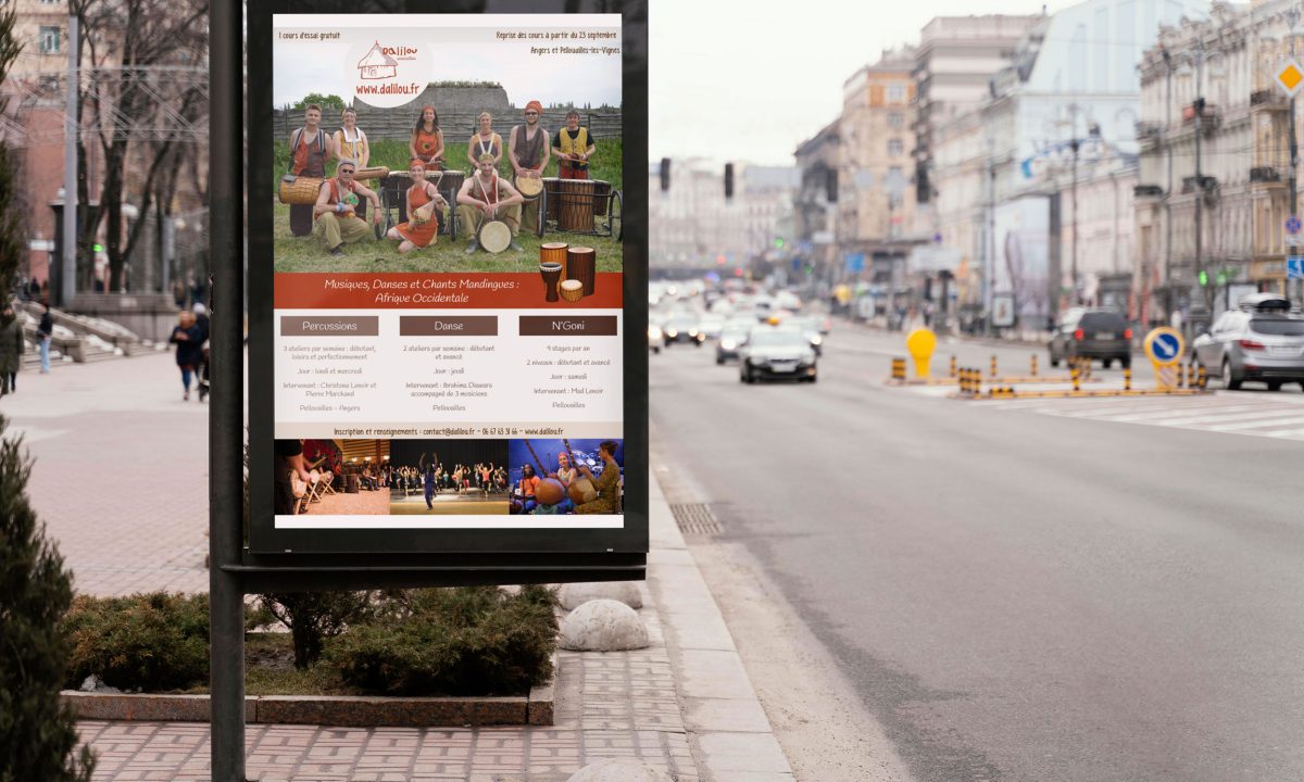 Tous les ans, au mois de septembre et afin de préparer la rentrée des activités, l’association Dalilou réalise une affiche pour mettre en avant ces différents ateliers : atelier de percussions, stage de danse africaine et stage de kamélé n’goni. Il est impératif de communiquer sur les activités de l’association afin de trouver de nouveaux adhérents et ainsi partager la culture Mandingue.