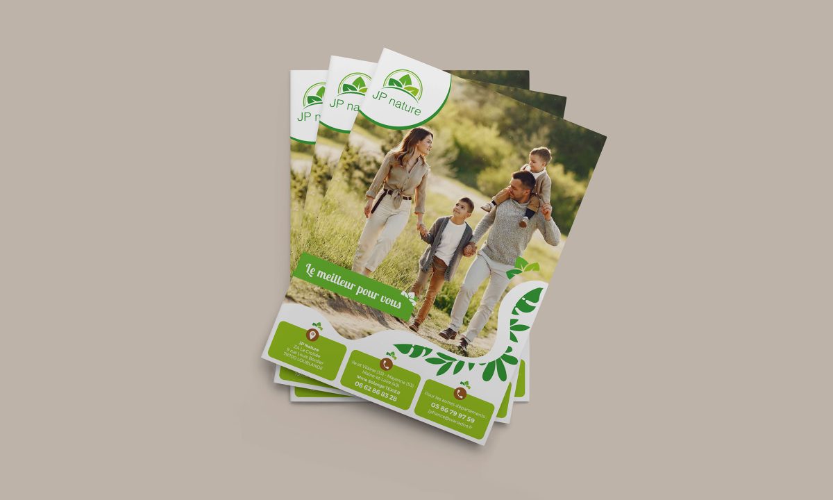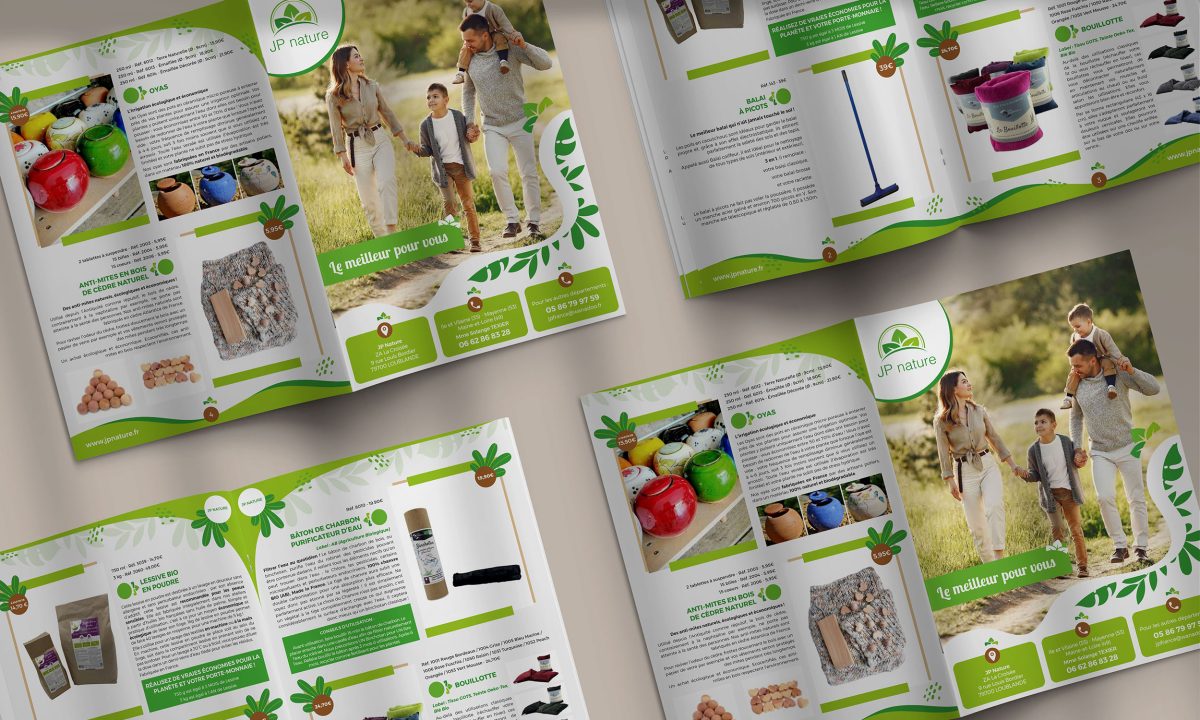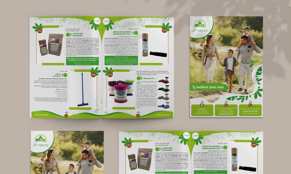 JP Nature a fait appel à la Boîte à Bidules pour réaliser ces nouveaux catalogues et outils de communication. Dans un premier temps, nous avons travaillé sur la création d’un catalogue 4 pages afin de présenter les nouveaux produits.