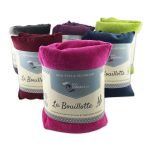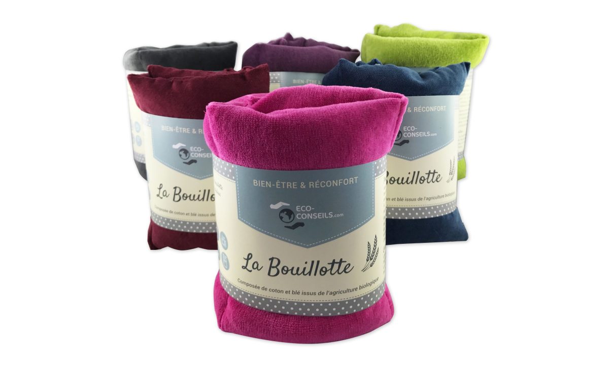 Nous avons travaillé ensemble sur la création d’une étiquette bandeau pour une série de bouillotte. Ces bouillottes sont en velours et blé issus de l’agriculture biologique, elles se chauffent au four micro-ondes et sont utilisées comme accumulateur de chaleur. Elles sont fabriquées en France.