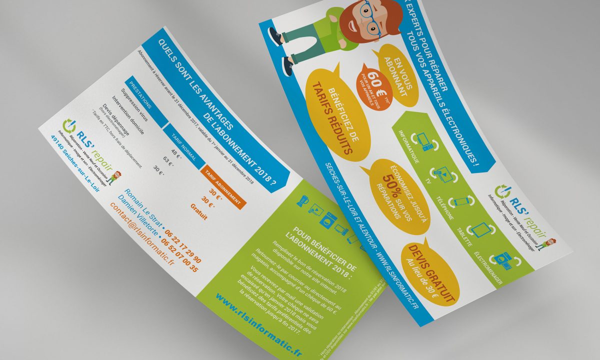 La Boîte à Bidules a réalisé le flyer de RLS’Repair, réparation informatique, électroménager et TV / Multimédia à Corzé, en Maine-et-Loire.