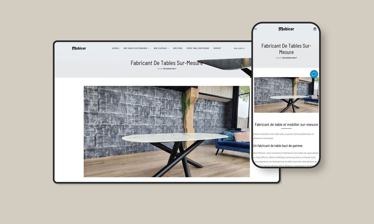 Un site marchand pour Mobicer, fabricant de tables sur-mesure en céramique