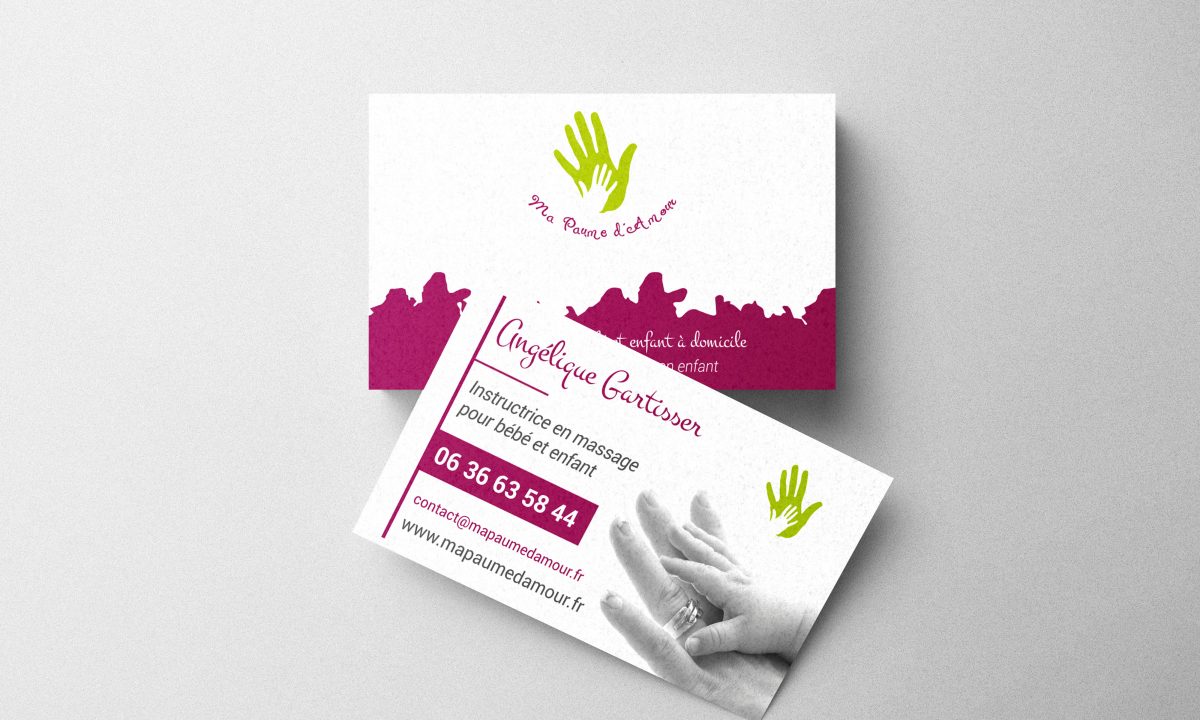 Après avoir réalisé le logo il y a près de 10 ans et réaliser la refonte de son site internet l’année dernière, Ma Paume d’Amour souhaitait retravailler sa carte de visite afin qu’elle soit plus en accord graphiquement avec le nouveau site.
